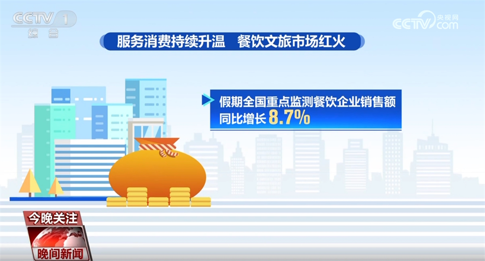Ülke genelindeki önemli perakende ve catering şirketlerinin satışları,% 6,3 oranında arttı. Ticaret Bakanlığı, perakende işletmelerinin ev aletleri, otomobil ve iletişim ekipmanı satışlarını izlemeye odaklandı. E-ticaret platformlarında akıllı ev ürünlerinin satışları yıllık% 20'den fazla arttı. Hizmet tüketimi ısınmaya devam ediyor ve ikram ve kültürel turizm pazarı patlıyor. Tatil sırasında, ülke çapında izlenen önemli catering şirketlerinin satışları yıllık% 8,7 arttı. Mayıs Günü Tatil Gözleminde