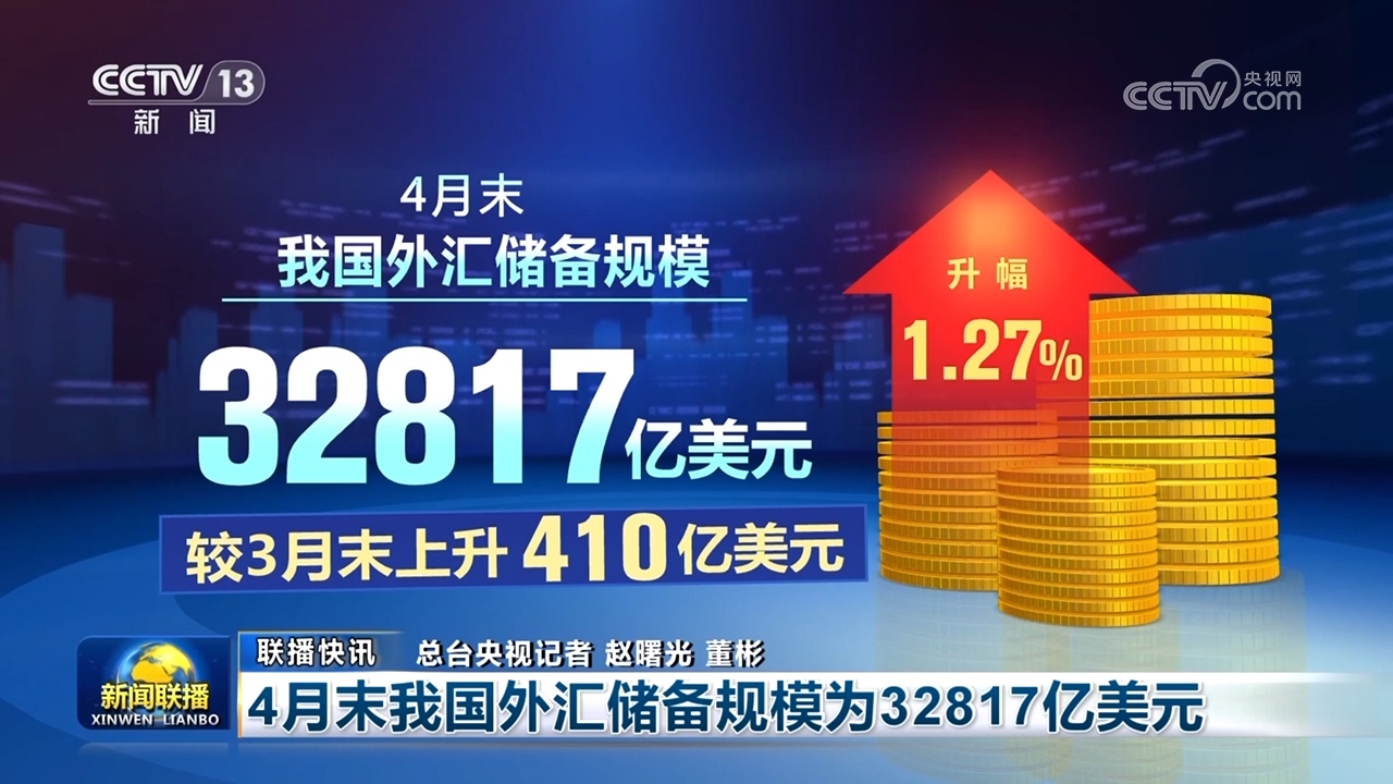国家外汇管理局最新数据显示,4月末,我国外汇储备规模为32817亿美元,较3月末上升410亿美元,升幅为1.27%,我国经济呈现向好态势,经济发展韧性强、活力足,有利于外汇储备规模保持基本稳定。