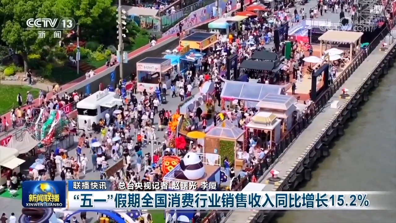 “五一”假期全国消费行业销售收入同比增长15.2%