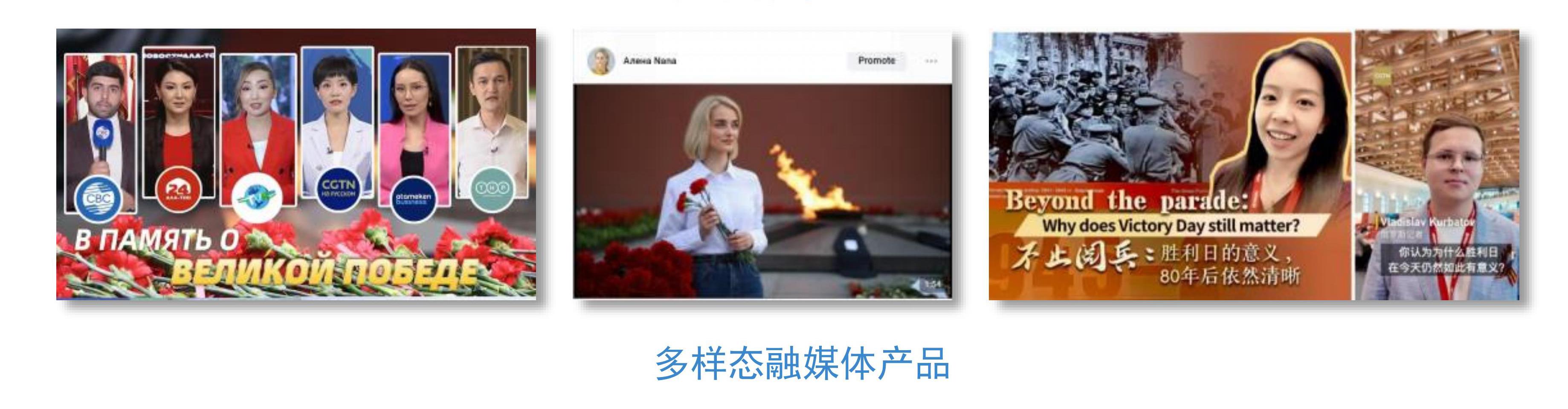 伟大胜利启迪未来。中文国际频道推出专题片《永不褪色的共同记忆》,CGTN与5家亚欧地区主流媒体联合推出特别节目《伟大的胜利》,多语种网红工作室发布AI创意短片《胜利的力量》、视频报道《共同的纪念》等,讲述80年前中俄两国人民同仇敌忾、并肩作战,为维护世界和平和人类进步事业作出彪炳史册的历史贡献。评论文章《以史为鉴守和平 共筑人类命运共同体》、图文帖《中俄抗战故事:铭记过去,启迪未来》、Vlog《和平回响》等,鲜活诠释“历史的记忆和真相不会随着岁月流逝而褪色,带给我们的启迪永远映照现实、昭示未来”。