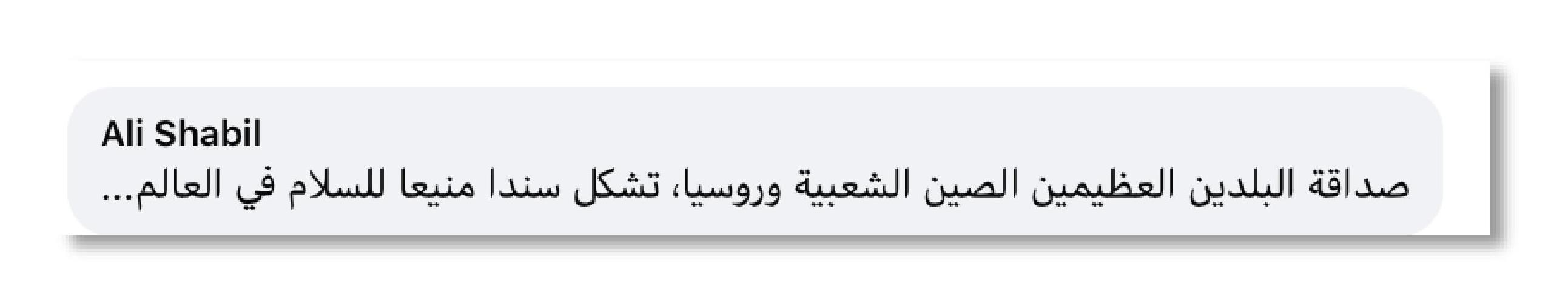 阿语网友:中国和俄罗斯这两个伟大国家的友谊,为世界和平奠定了坚实的基础。