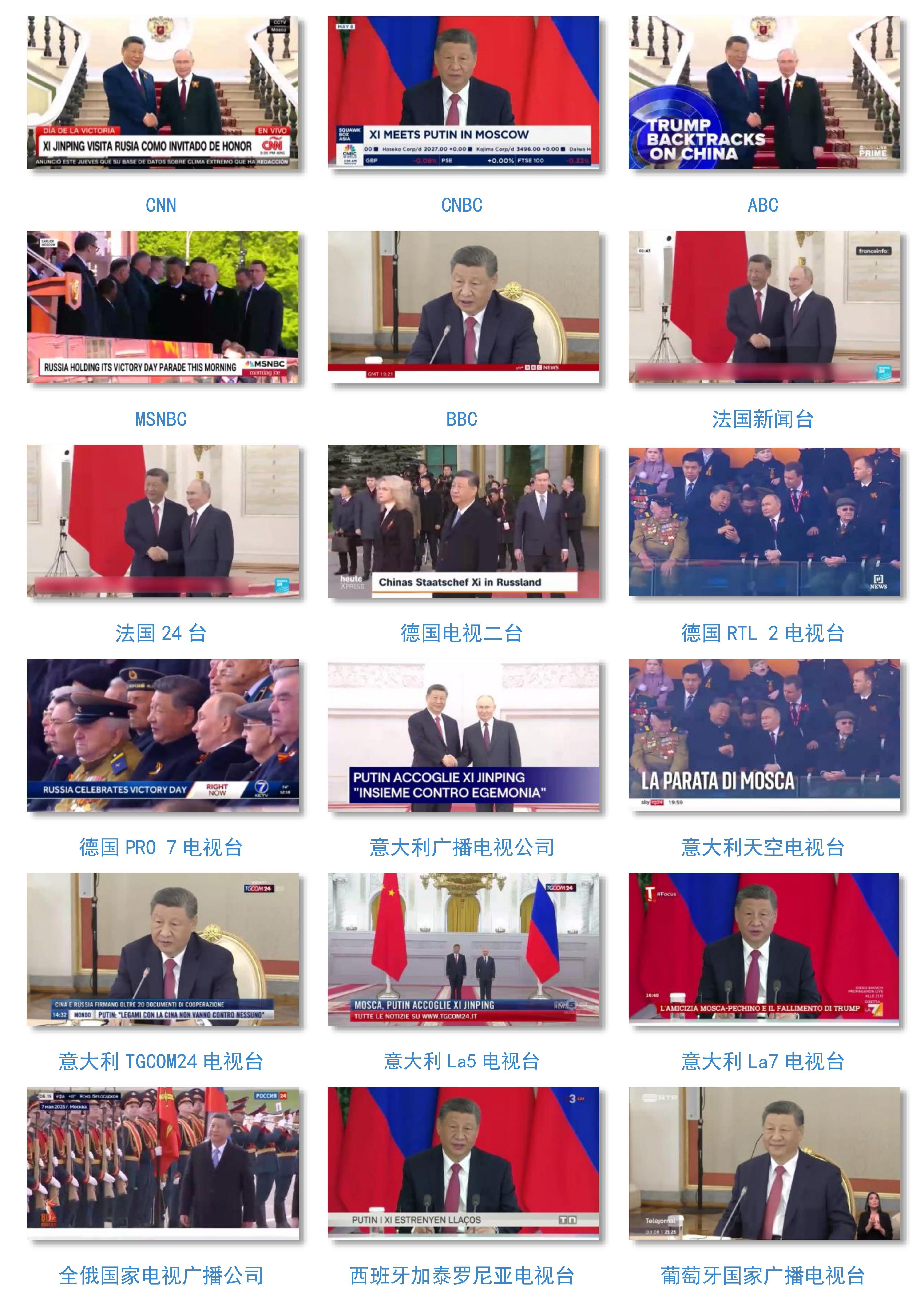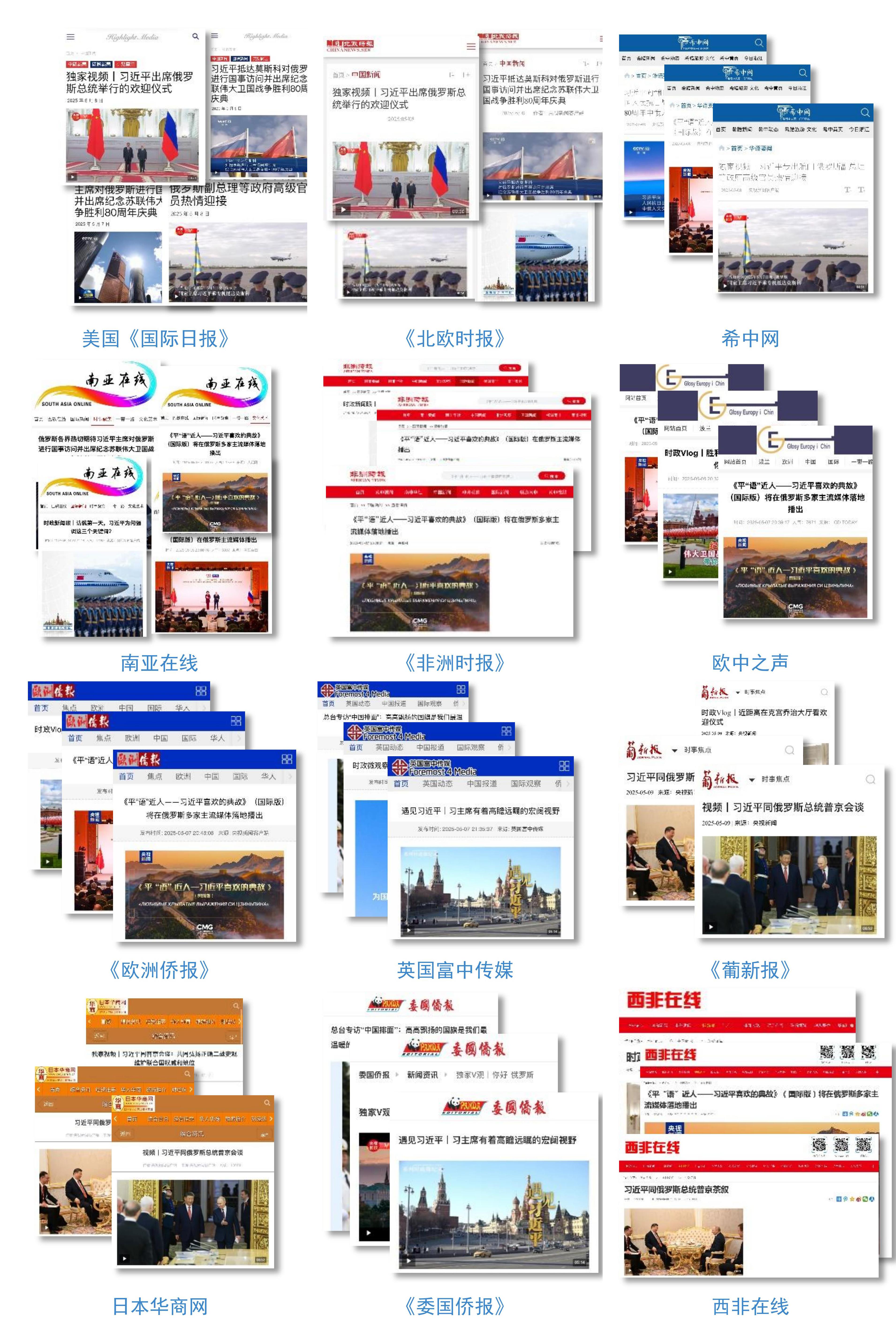 权威首发。此访期间,习主席同普京总统会谈茶叙、共见记者、签署联合声明,出席红场阅兵式,会见出席庆典的塞尔维亚、缅甸、古巴、委内瑞拉、斯洛伐克等国领导人,双多边活动丰富密集。央视新闻新媒体、CGTN英西法阿俄五语种大小屏推出独家直播,国际视频通讯社对外发布直播信号,同步向全球呈现大国外交重要时刻。央视新闻新媒体全网首发首推《习近平:承担起时代赋予的特殊责任 为促进中俄两国发展振兴 维护国际公平正义作出更大贡献》等49条时政快讯、独家视频,第一时间将习主席重大倡议主张传遍全球,“以史为鉴,共创未来”的时代强音响彻世界。