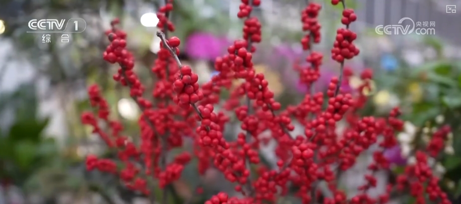 在河南鹤壁一家花卉市场内,各式各样的年宵花争奇斗艳。冬青、富贵籽火红的果子如同灯笼一般缀满枝头,红彤彤一片,十分喜庆。蝴蝶兰造型美观、色彩明艳,仙客来花型饱满、寓意美好。市场内前来选购花卉的市民络绎不绝。