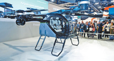 图为展出的小鹏汇天分体式飞行汽车“陆地航母”。小鹏汇天供图