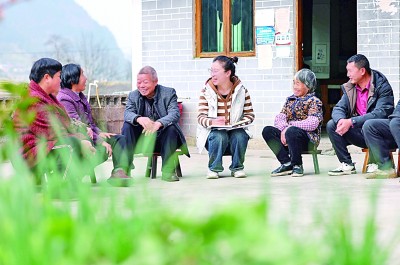贵州省岑巩县注溪镇周坪村驻村干部(中)走访群众。新华社发