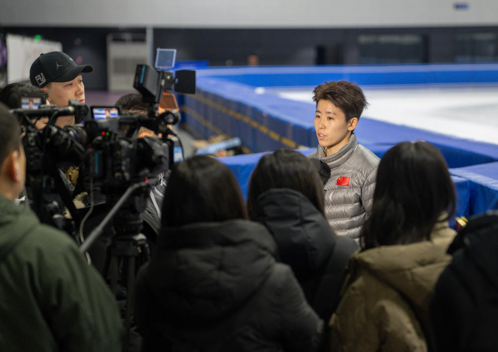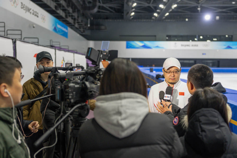 1月21日,中国短道速滑国家集训队领队刘辰宇接受媒体采访。新华社记者 孙非 摄