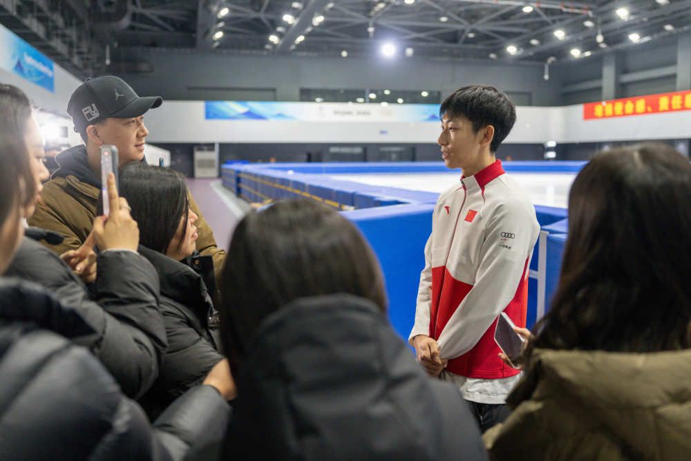 1月21日,中国短道速滑国家集训队队员孙龙接受媒体采访。新华社记者 孙非 摄