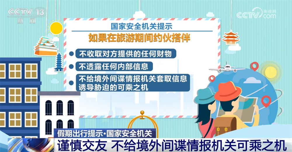 CCTV Haberleri: Bahar Festivali tatili yaklaşıyor ve birçok insan tatillerini yurtdışına seyahat etmek için kullanmayı planlıyor. 22 Ocak'ta, ulusal güvenlik organları yurtdışına seyahatleri sırasında, önleme konusundaki farkındalıklarını güçlendirmeleri ve ulusal çıkarlara zarar verebilecek herhangi bir davranışa katılmamaları veya yardım etmemeleri gerektiğini hatırlattı.