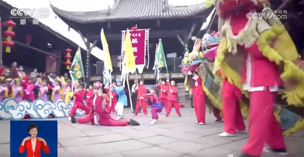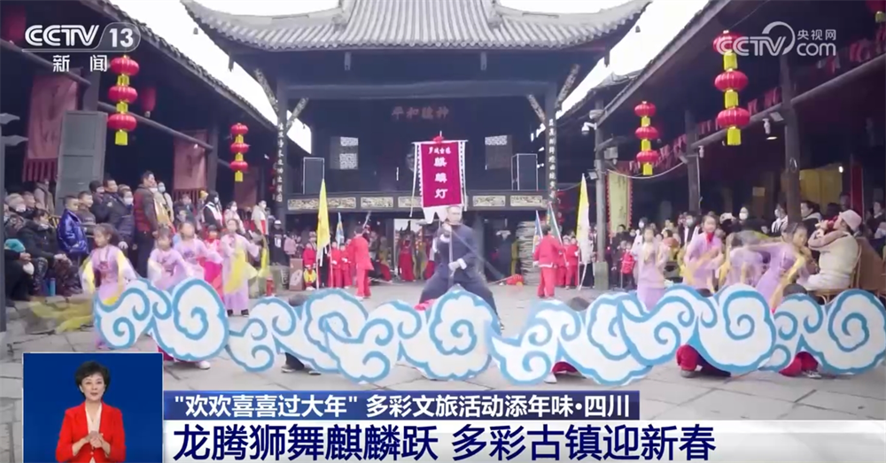 Sichuan: Dragons ve Lions Dance ve Qilins sıçradı. Renkli antik kasabalar yeni yılı karşılama