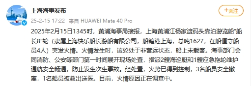Şangay'daki bir rıhtımda yangın bir tur teknesinde yangın çıktı: gemiye yolcu taşınmadı, üç mürettebat üyesi güvenli bir şekilde tahliye edildi ve bir kişi kurtarıldı ve hastaneye gönderildi