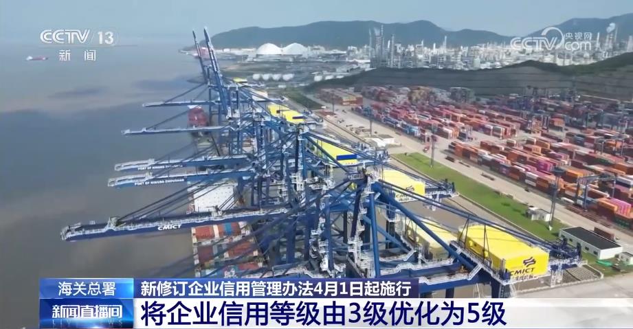 中國海關總署:新修訂的企業信用管理辦法將於4月1日起施行