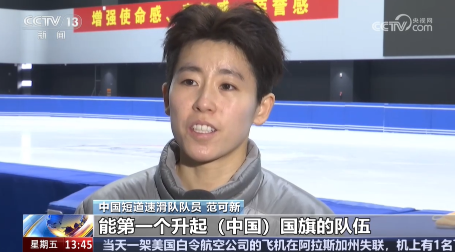 中國短道速滑隊隊員 範可新:天時地利人和,這個真的是在家門口兒了,希望因為我們的努力,大家的努力,能第一個升起(中國)國旗的隊伍。