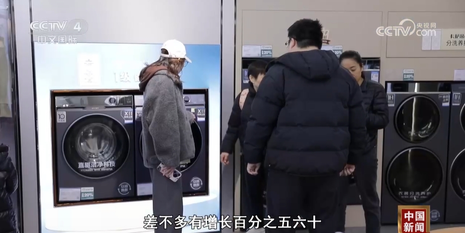 上海某家電門店店長顧林林介紹,2025年1月1日直接延續了去年的8大類(以舊換新產品)的一個補貼,整個補貼開始到現在,整體的銷售同比去年差不多有增長百分之五六十。