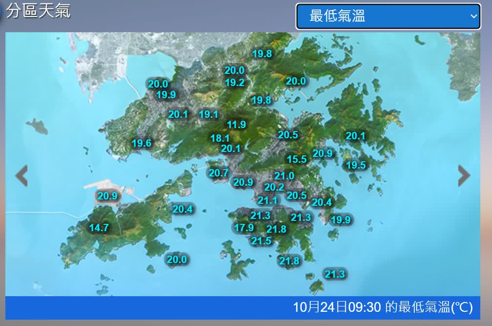 香港文匯報訊 秋風送爽,東北季候風會在今日(24日)繼續影響廣東。同時,一道廣闊雲帶覆蓋華南。本港地區今日(24日)天氣大致多雲,早晚有一兩陣微雨。早上市區最低氣溫約為21度,日間部分時間天色明朗,最高氣溫約25度,吹和緩至清勁北至東北風,初時離岸間中吹強風。今日的最高紫外線指數大約是5,強度屬於中等。