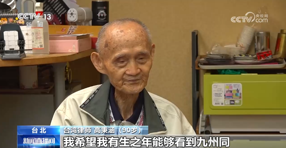台湾律师 高秉涵:我今年正好90岁,最后一个愿望,我希望,我有生之年能够看到九州同,这是我最后一个愿望。