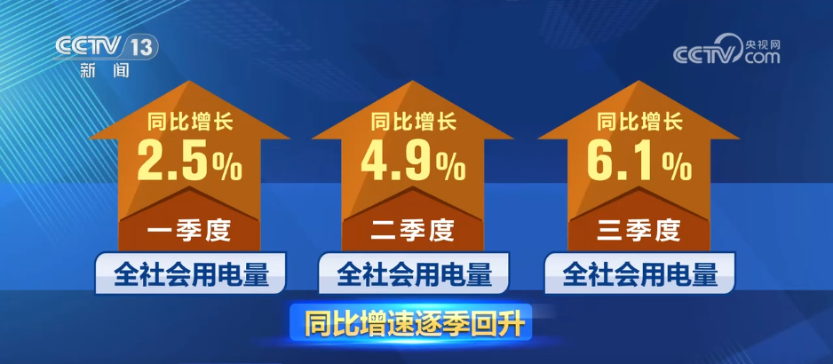 中国电力企业联合会常务副理事长 杨昆:由于今年夏天多轮高温天气拉动全社会最大负荷屡创新高,带动城乡居民生活用电量持续增长。前三季度,全国全社会用电量创历史新高。