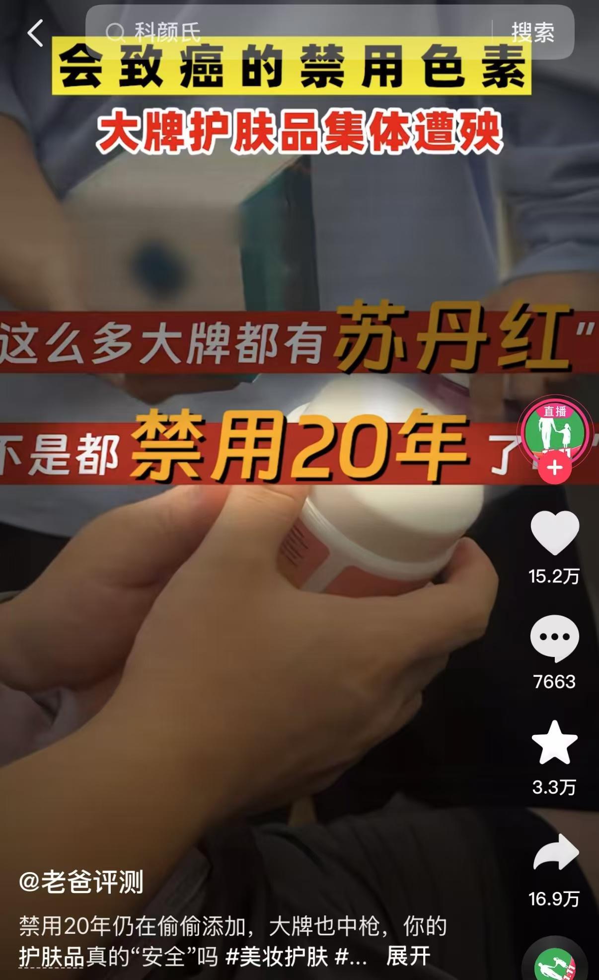 化妆品检出苏丹红,而且多个知名品牌中招?近日,“老爸评测”发布视频称,在多款化妆品中检测出禁用成分苏丹红,引发舆论关注。事件发酵后,涉事品牌作出回应。听研、且初、chillmore且悠等品牌旗舰店客服称,第一时间安排了产品送检,待检测结果出具后将进行公示。