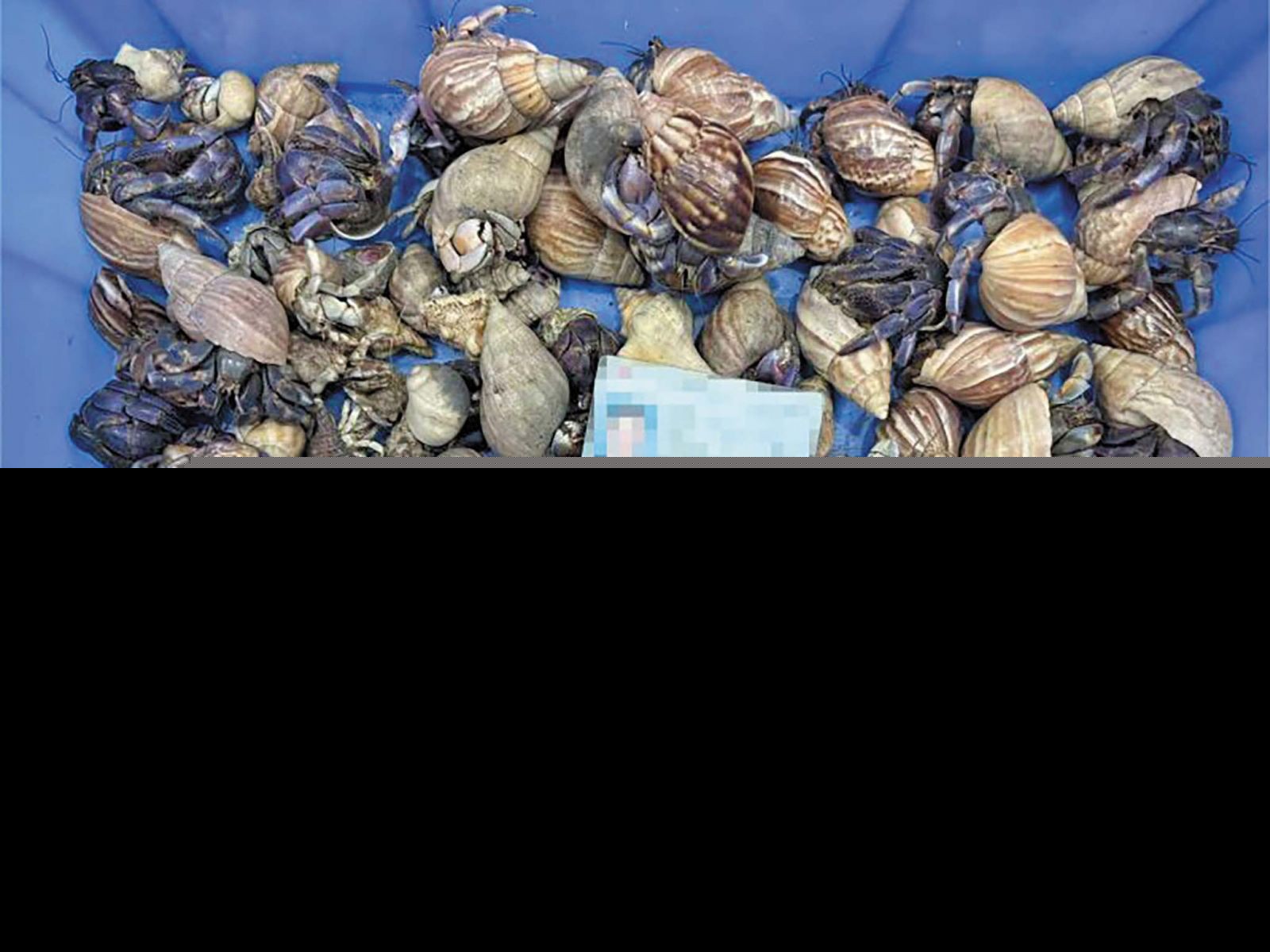 拱北海關近日對外通報,該關所屬閘口海關近日在拱北口岸成功查獲96隻活體灰白陸寄居蟹,屬於國家明令禁止攜帶進境的活動物。
