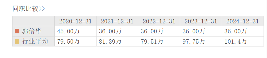 侨银股份董事长为郭倍华,现年67岁。2021年-2024年,郭倍华薪酬均为36万元。