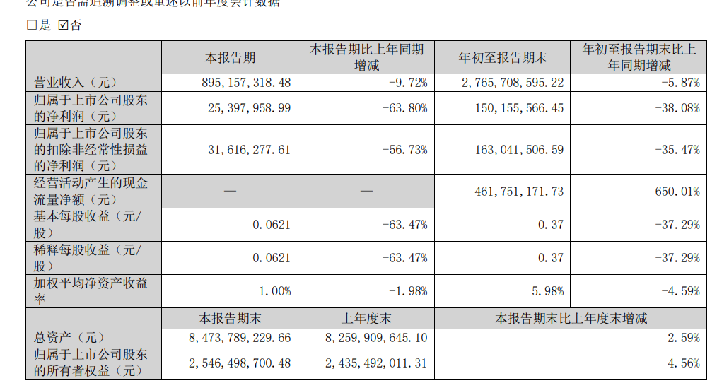 2025年前三季度,侨银股份营业收入27.66亿元,同比减少5.87%;归属于上市公司股东的净利润1.5亿元,同比减少38.08%。