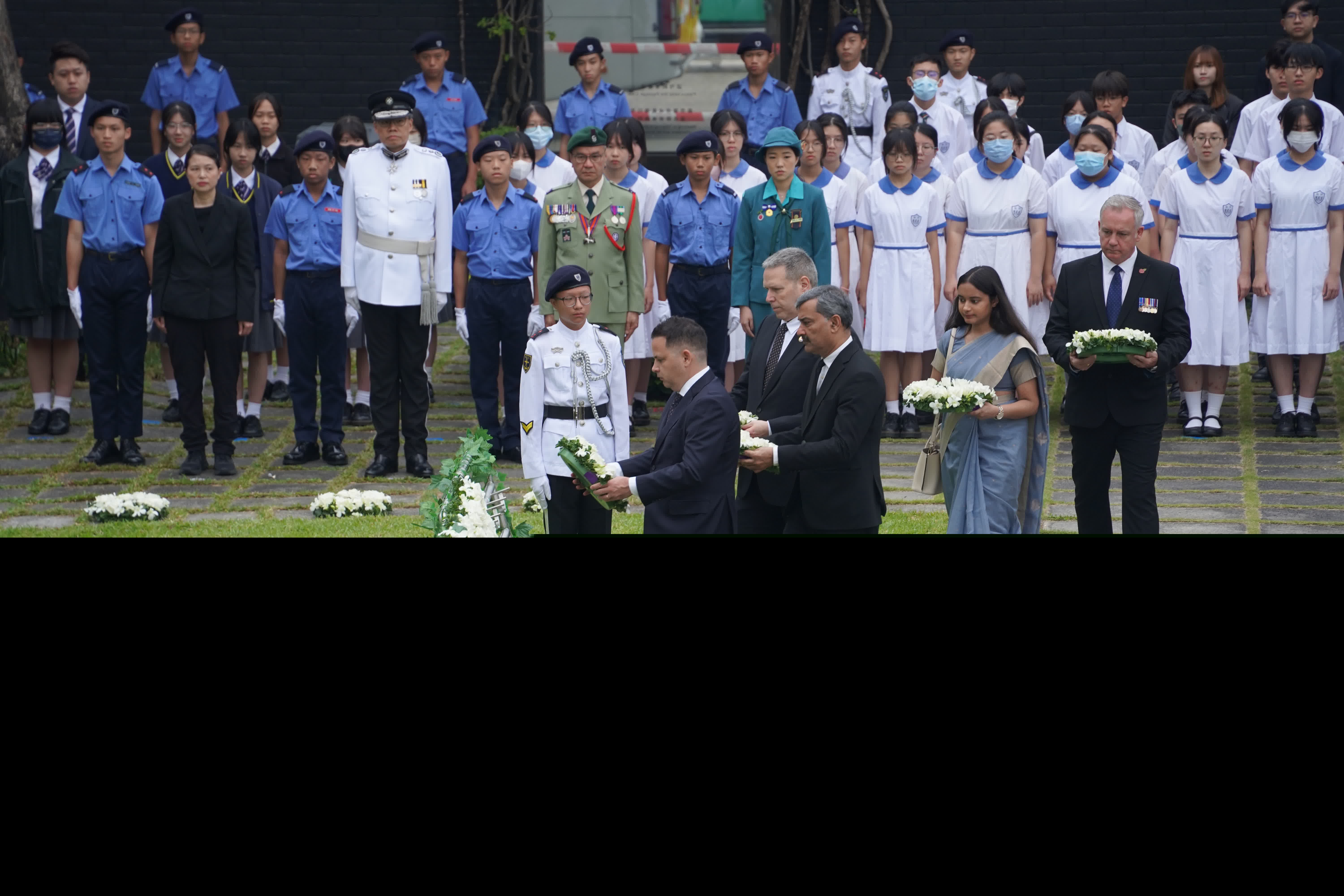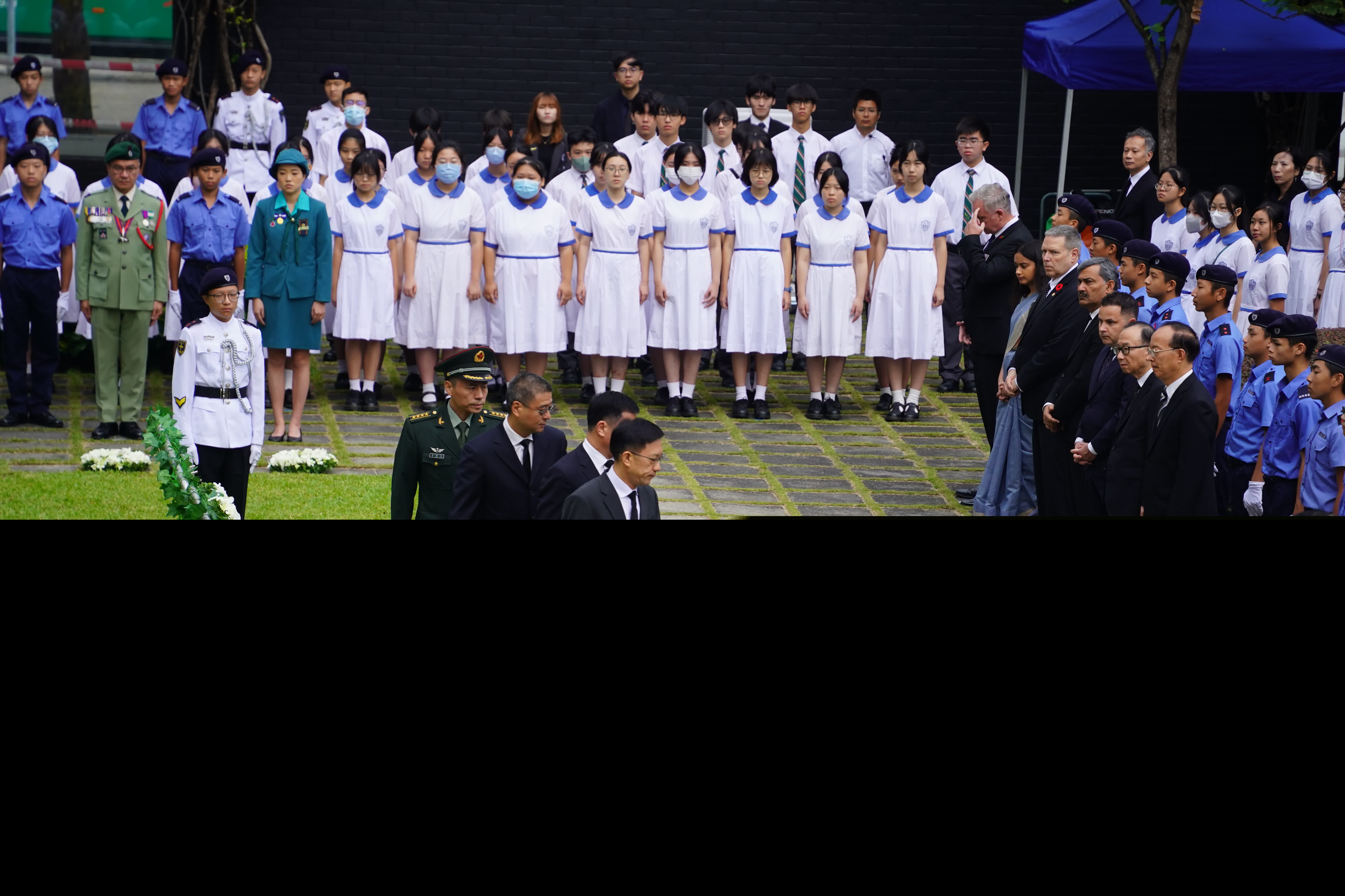 (大公文匯全媒體報道)今日(29日)是重陽節,特區政府於香港大會堂紀念花園舉行一年一度的官方紀念儀式,悼念於1941至1945年間為保衛香港而捐軀的人士。署理行政長官陳國基出席儀式並致獻花圈。前行政長官曾蔭權,多名司局長、及行會召集人葉劉淑儀等,都有出席。