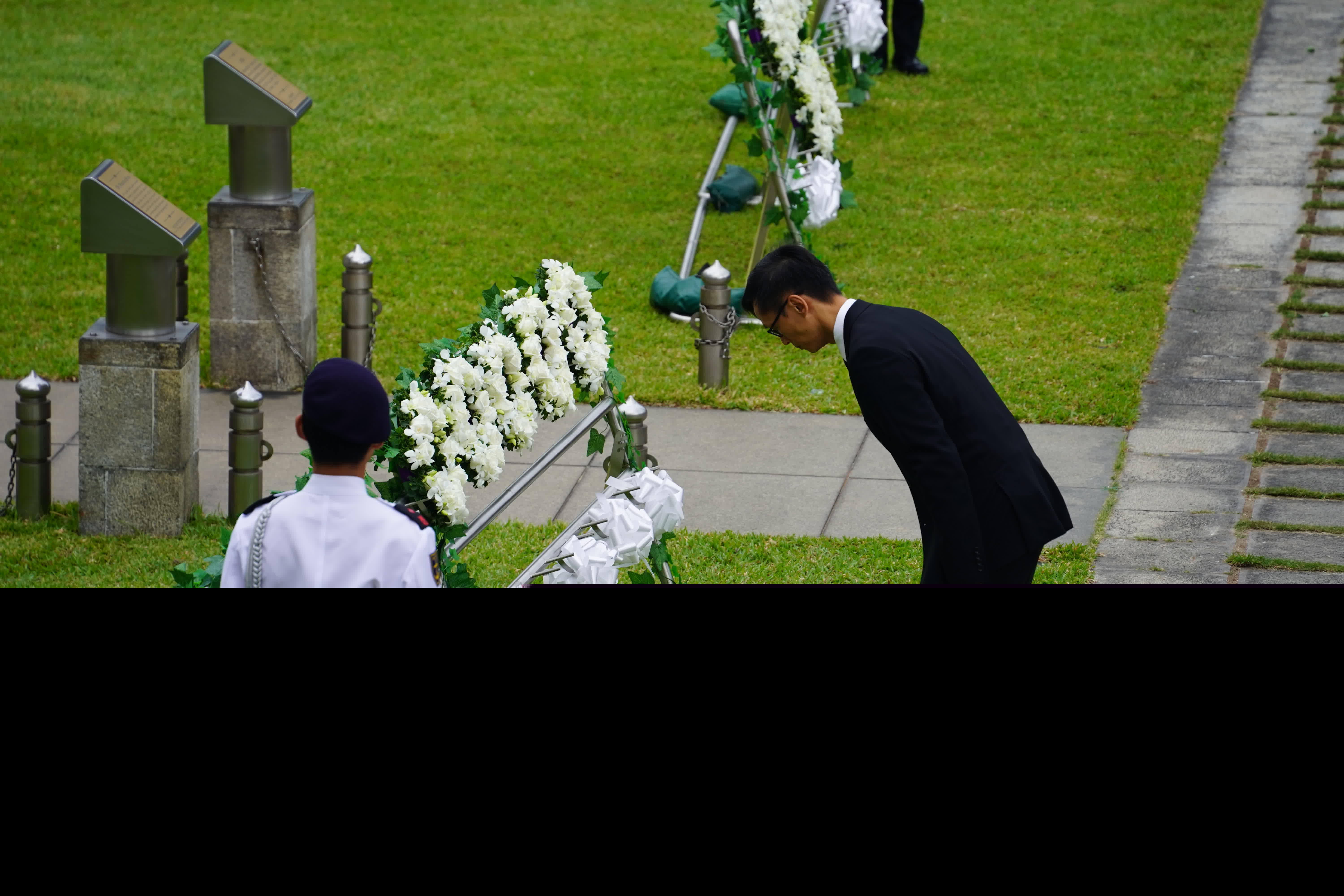 儀式早上八時開始,在奏唱國歌和升國旗區旗後,全場默哀兩分鐘。