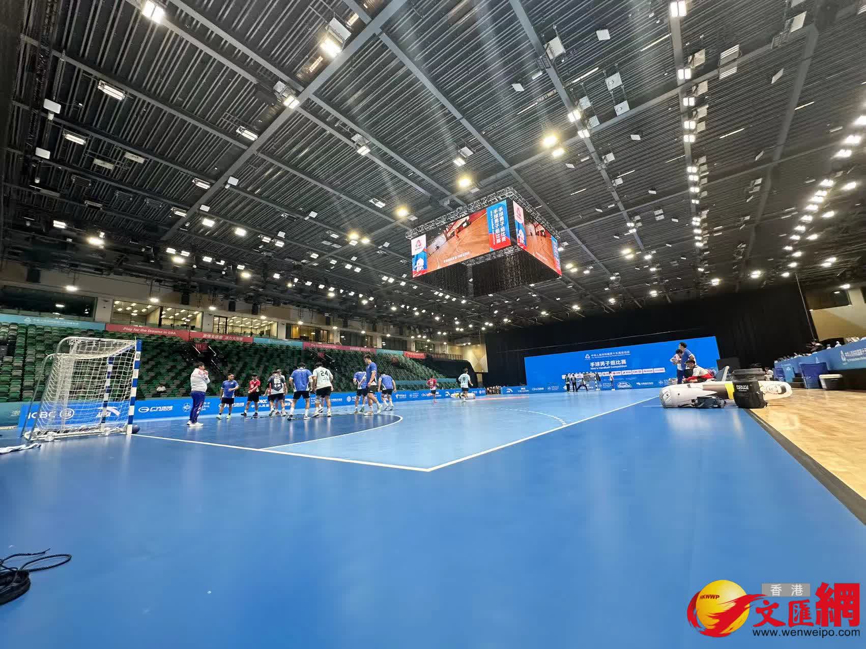由香港主辦的全運男子手球項目將於周六展開,比賽場館啟德體藝館已準備就緒,全運辦主任楊德強表示10支參賽球隊已悉數來港,所有球員均對場地和住宿非常滿意,今次賽事場館能容納5千名觀眾,希望市民踴躍入場支持港隊。