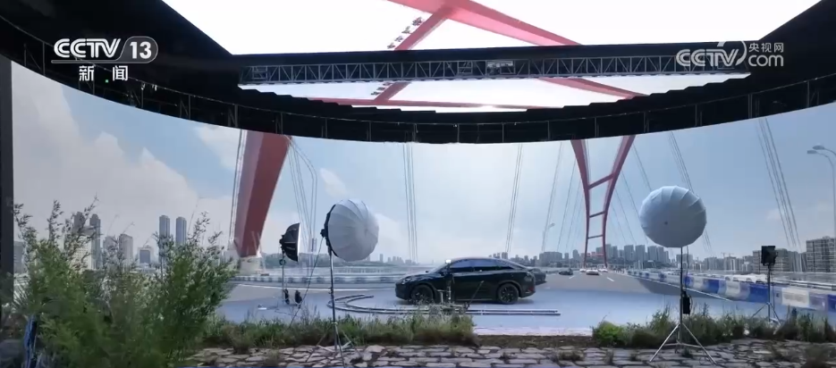 新质生产力突破的想象远不止于此。在重庆永川科技片场,新搭建了“全国首个数字智能置景车间”,配备了工业化换景平台,只需点一下鼠标,不到一秒钟就能切换场景,再结合LED虚拟拍摄环境,让拍摄效率提升了55%,科幻大场景成本降低了90%。