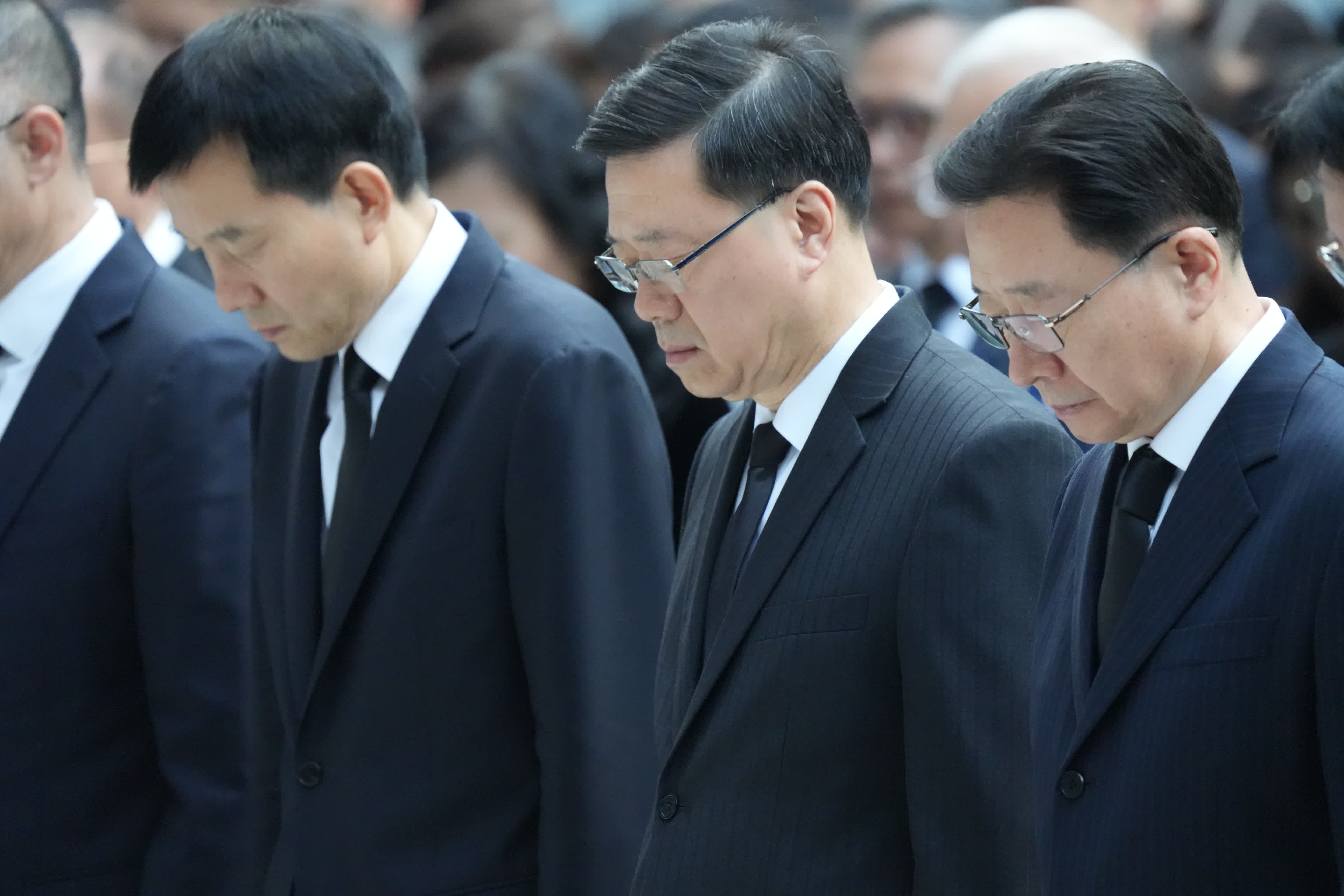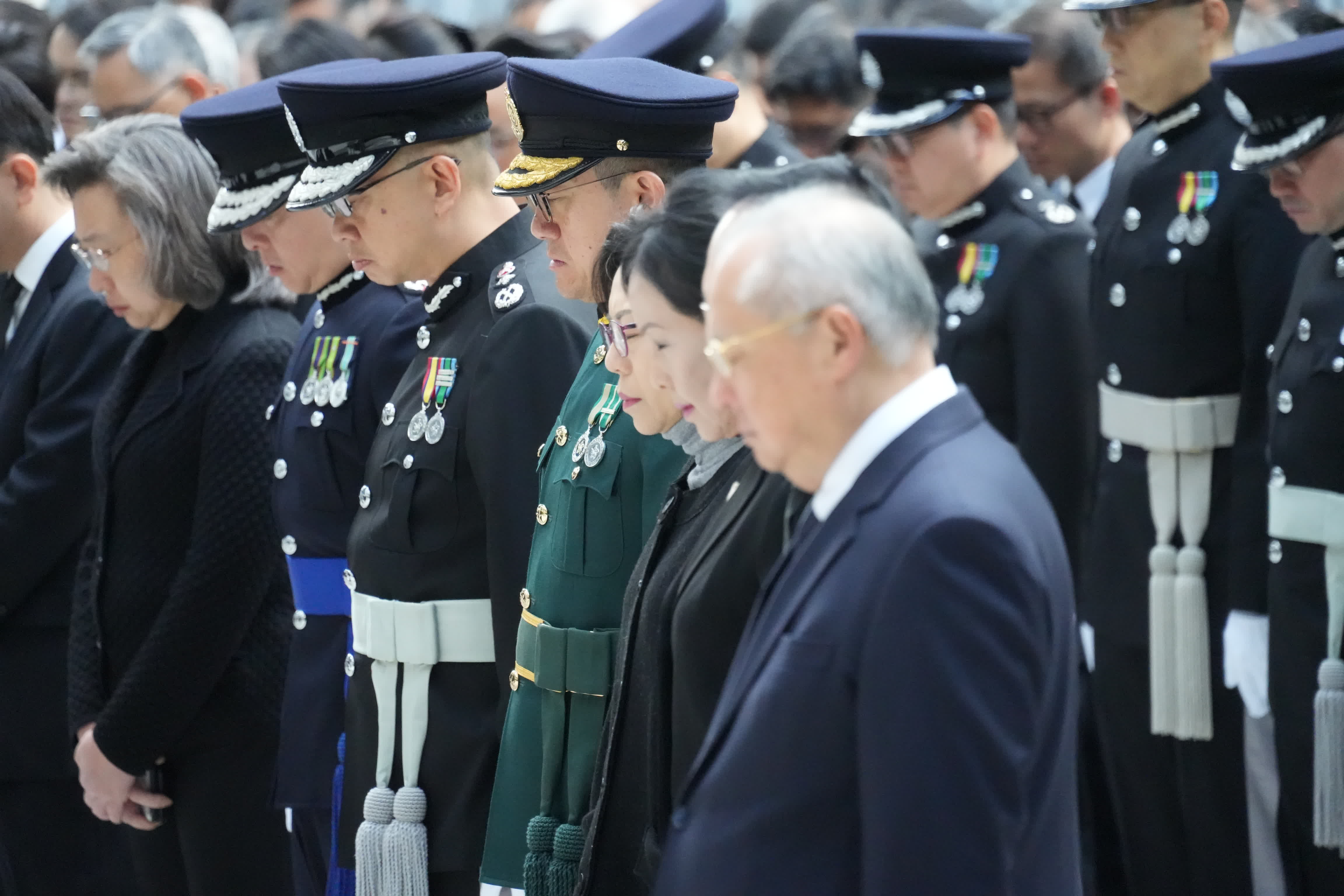 來港協助開展救災工作的中央港澳工作辦公室、國務院港澳事務辦公室分管日常工作的副主任徐啟方;中央港澳工作辦公室、國務院港澳事務辦公室副主任、香港中聯辦主任周霽;中央港澳工作辦公室、國務院港澳事務辦公室副主任農融也有出席參與默哀。