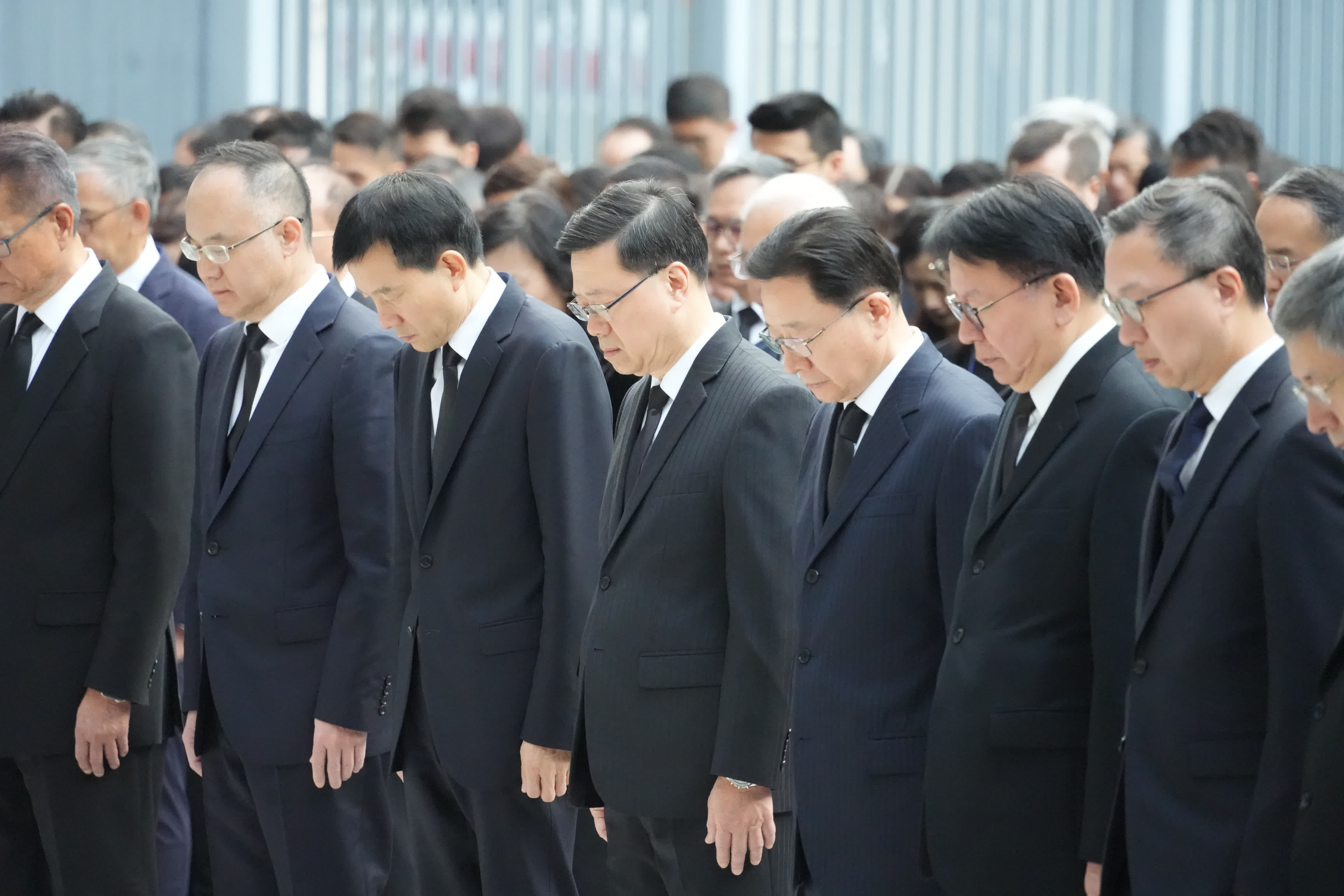 其後,李家超、徐啟方副主任、周霽主任、農融副主任和主要官員在政府總部簽署弔唁冊,向罹難者誌哀。