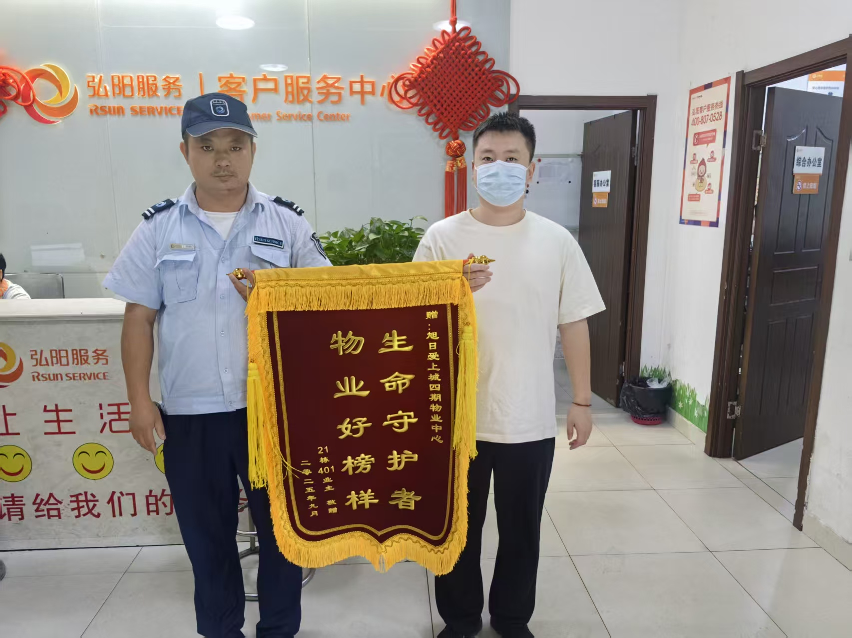 等待救援时,他持续为业主物理降温,轻声询问症状,同步联系物业管家通知家属。因处置及时,业主顺利送医转危为安。事后,业主送来“尽职尽责、暖心为民”的锦旗,表达感激之情。