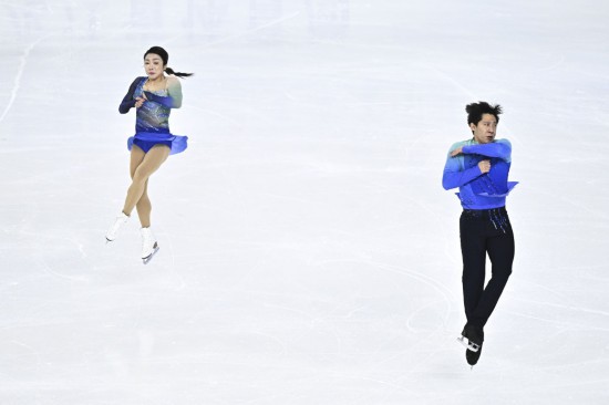 12月27日,隋文静(左)/韩聪在双人滑自由滑比赛中。新华社记者 张涛 摄