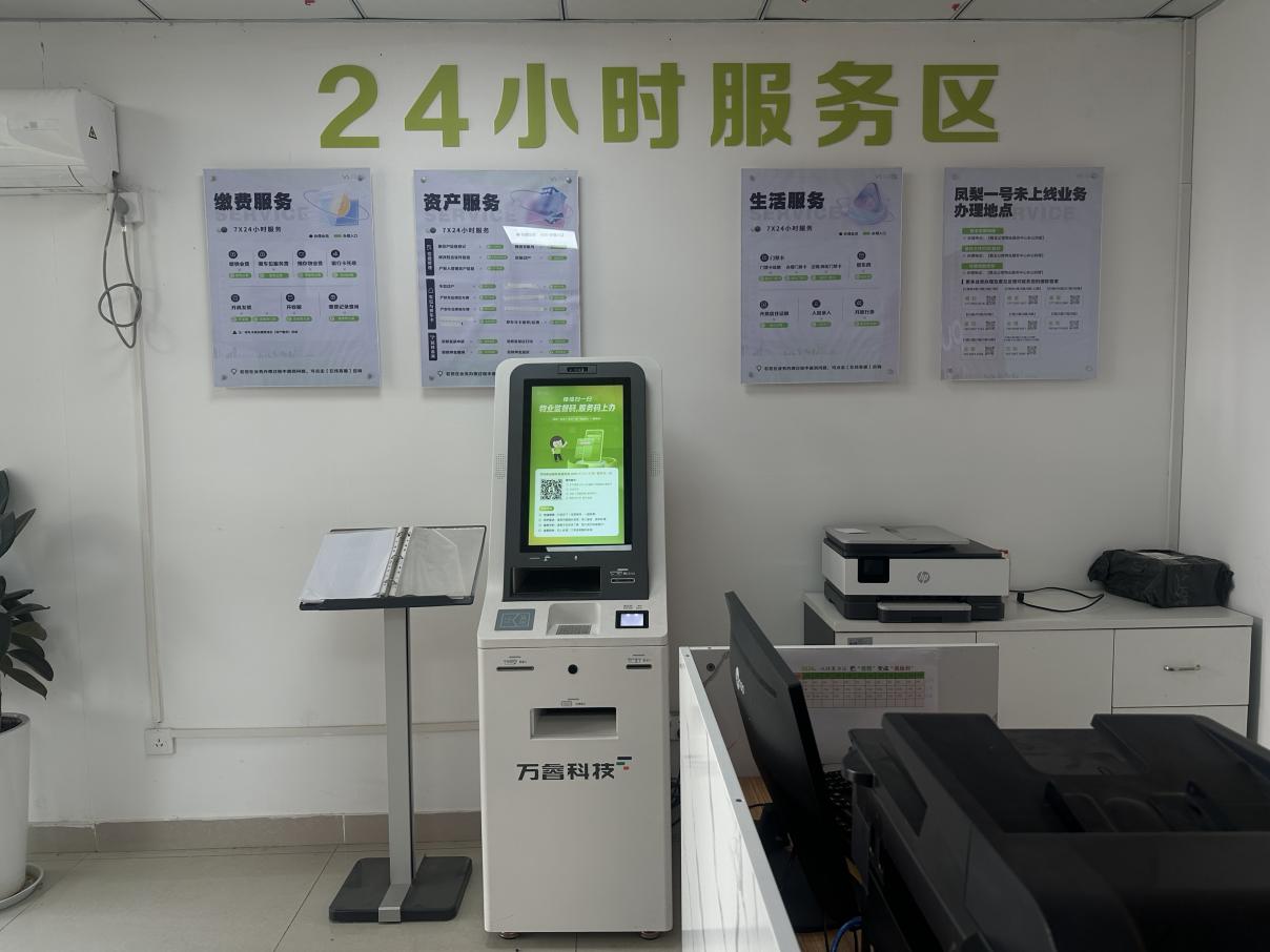 项目引入智慧物业服务机“凤梨一号”,提供装修、门禁、缴费等29项业务24小时自助办理,日均服务约16人次,最晚服务至凌晨1:32。一位晚归业主表示:“下班路过就能办事,像有一个永不下班的物业窗口,特别踏实。”