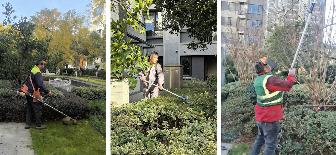 在园区绿化养护方面,项目今年已累计补种苗木34320株,并对园区内高大乔木实施了系统化修剪,通过专业的冠型梳理与精细修枝,在保持树木健康的同时,也营造出更疏朗有致的空间视觉。此外,团队还将部分易被踩踏的绿化区域,创新改造为既实用又美观的汀步小径。一位常在此散步的业主感慨:“原来这里总是秃一块,现在做成汀步,既保护了草,走起来也舒心,看着就舒服。”植被选择上也可见用心——以品相更佳的玉龙草逐步替换普通麦冬,这一细节让懂行的业主点头认可:“选材扎实,能看出是真的在用心打造园区。”