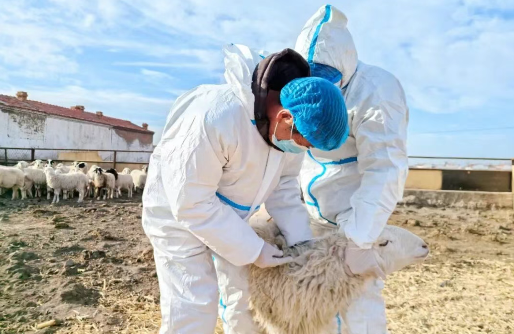 “一定要做好圈舍的清理,定期消毒……”,在白海子镇侯家村养殖户刘利荣家,记者看到,防疫人员身穿防护服,佩戴口罩和手套,在圈舍内严格按照注射流程,为动物进行疫苗接种。随后仔细查看牲畜生长情况,并向村民讲解疫苗接种后的注意事项,共同做好防疫工作。