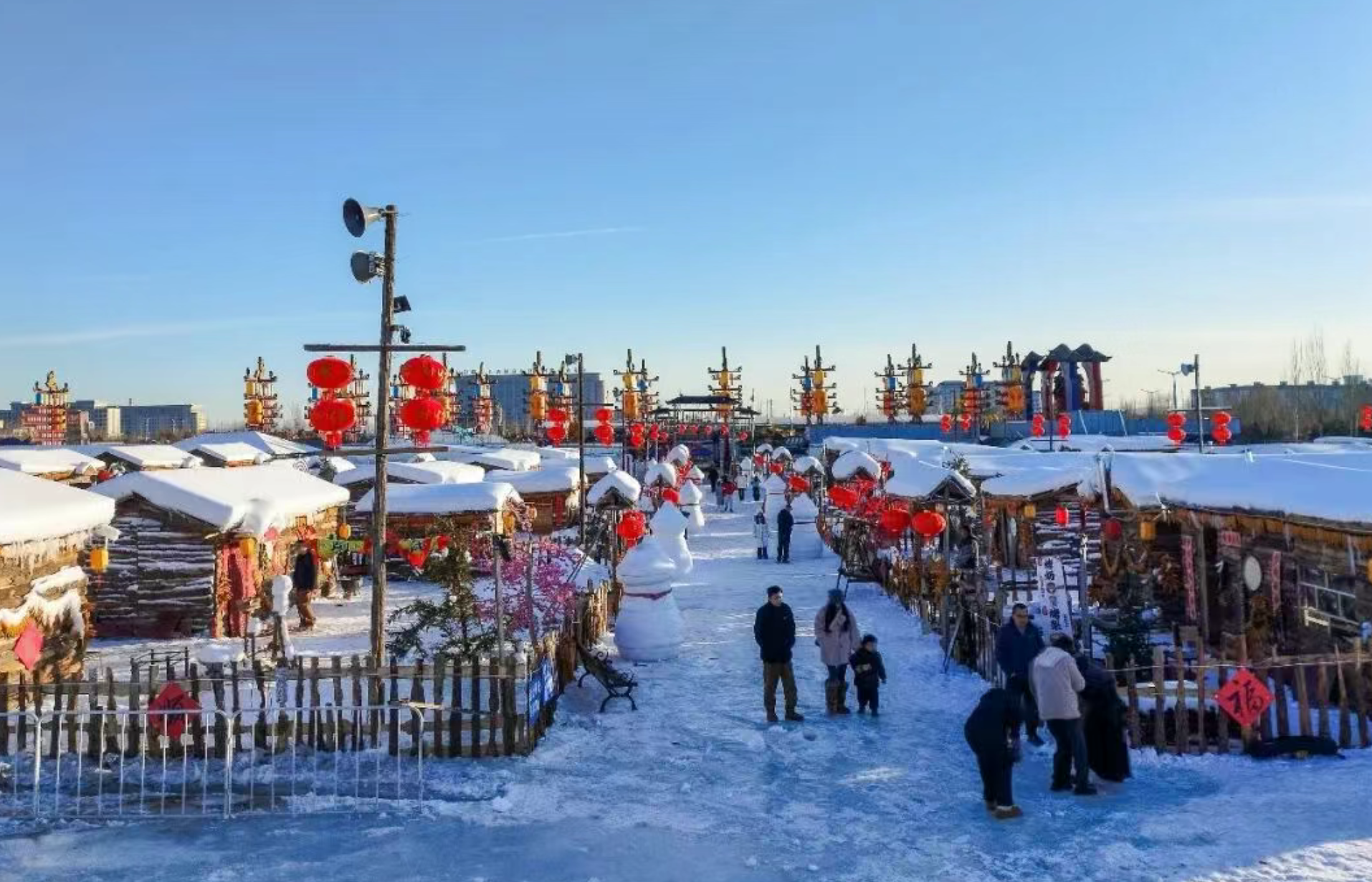 乌兰察布之夜全新梦幻雪乡冰雪世界板块惊艳亮相,北方传统风貌的院落充满了浓郁的雪乡风情。王锦鹏 摄