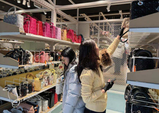 图为消费者正在超级转转门店包袋区挑选二手奢侈品包。
