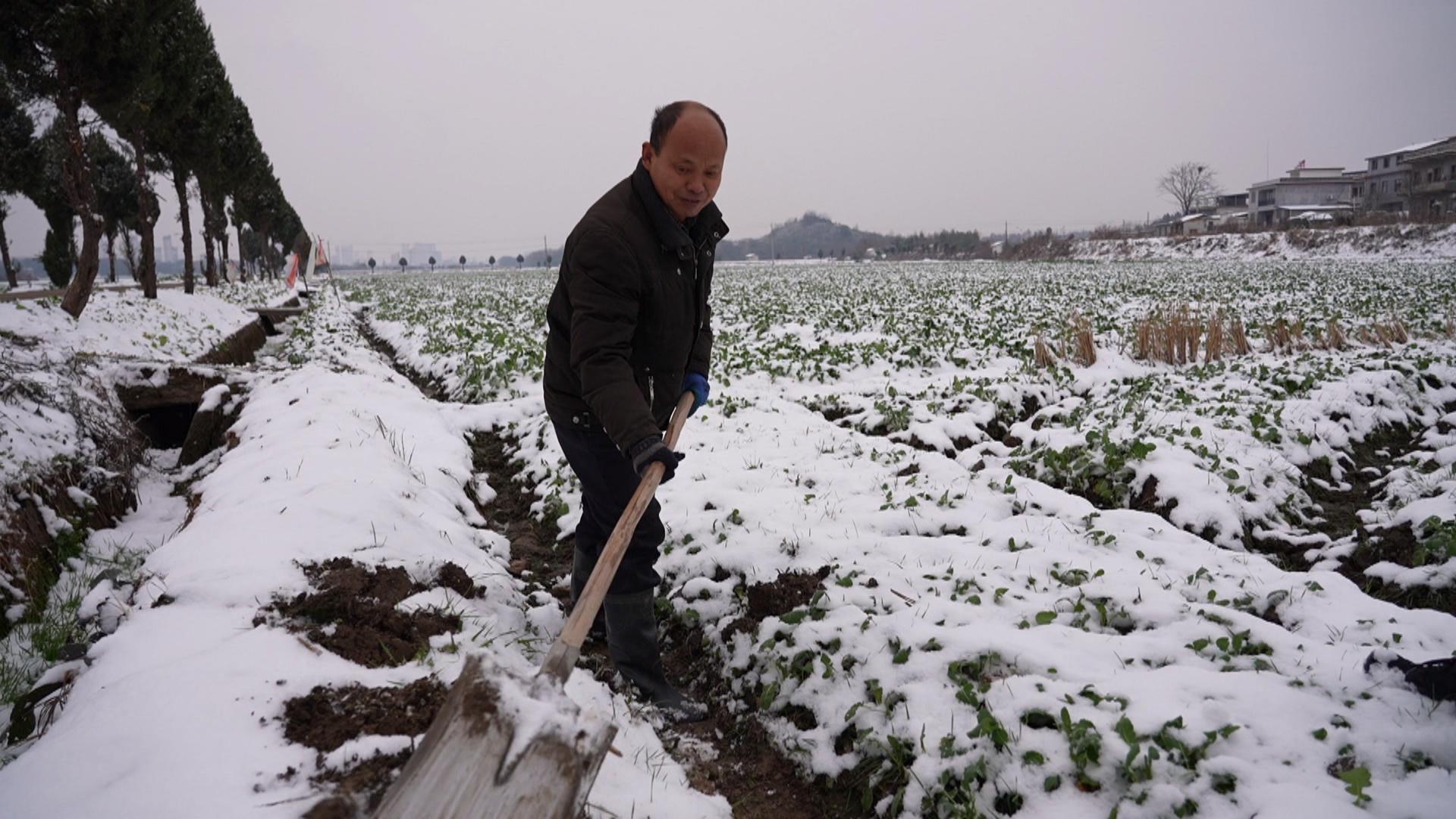 在蔬菜大棚边,农技员俯身检查棚内温度计;在鱼塘旁,技术人员指导养殖户加深水位;在油菜田里,农户们跟着农艺师疏通沟渠。风雪中,他们的身影交织成一张覆盖湖北全省的农业防寒安全网。