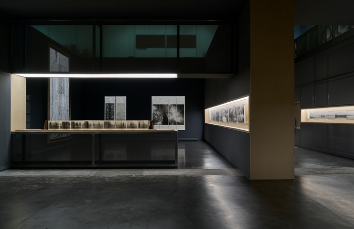 观众在展厅中的行走路径被精心设计,宛如漫步于园林或山径,视线在巨幅全景与微观细节之间转换,也随着景观的变化在黑白山水间穿梭。通过借鉴中国园林的“移步换景”理念,曲折的行进路径与错落的展墙关系引导着观者的步伐,从而延缓和延展其观看节奏和视角,在空间层面回应了秋麦作品所倡导的观看方式。