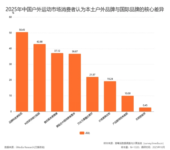 由于发展时长、背景、轨迹不同,中国户外市场与国际市场相比,在消费者认知、品牌竞争格局和核心优势方面呈现出显著差异。比如,国际品牌在专业化知名度上要更突出,本土品牌的核心优势则是对本地市场的敏捷响应和深度理解。
