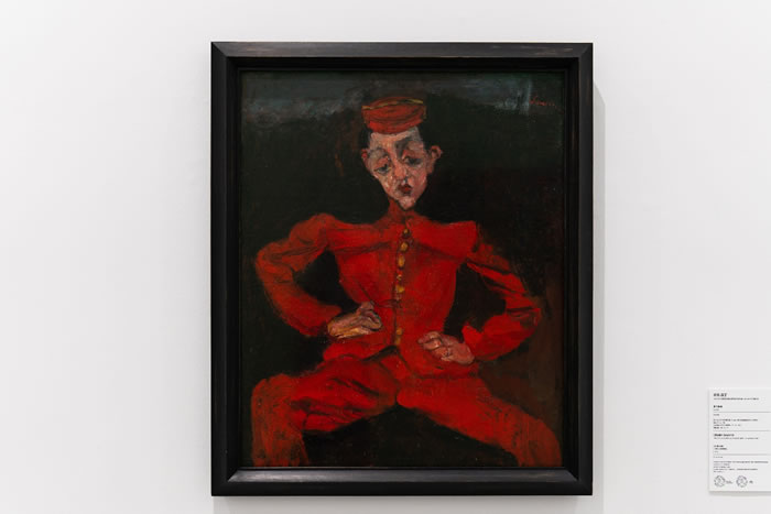 柴姆·苏丁的《青年侍者》是蓬皮杜“色彩之巅”展览红色板块的重要作品。画中描绘了一位在“马克西姆之家”工作,负责为客人跑腿的侍者,他身形瘦弱、体态近乎扭曲。侍者身着的鲜艳红色制服在近乎全黑的背景的衬托下格外醒目,画家对皮肤和衣物采用厚涂处理,赋予人物鲜活的物质感。苏丁以标志性的粗犷笔触和强烈的明暗对比,将人物塑造得生动鲜明,揭示了边缘群体的真实状态。