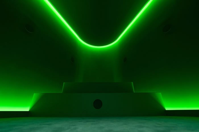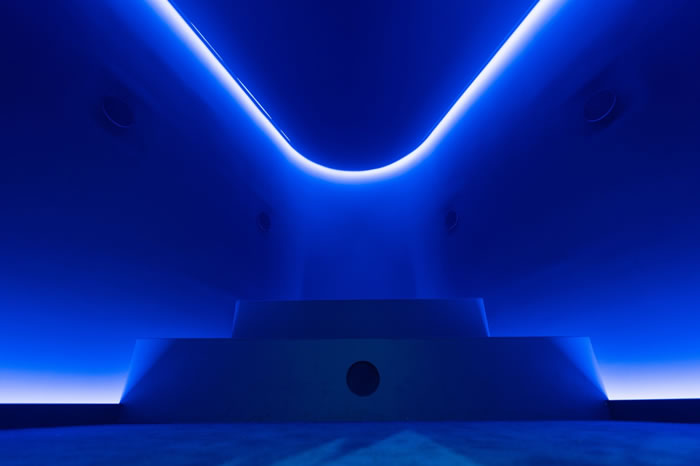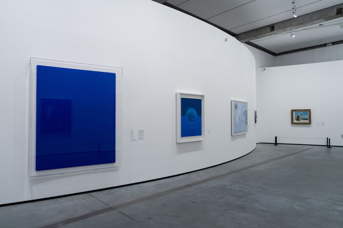 走入蓝色展厅,氛围瞬间转向静谧,仿佛踏入幽深的深海,视觉的蓝化作呼吸的轻缓、听觉的寂静。色彩为感官设置了欣赏节奏的切换机关。