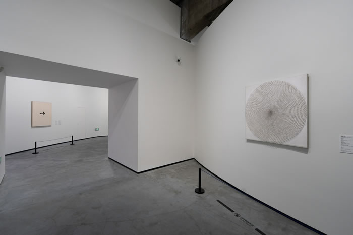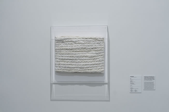 皮耶罗·曼佐尼的《无色》用玻璃纤维、金属丝和木材等材料在纯白色的画板上编织成起伏的白色肌理,消除了绘画的色彩对叙事性的干扰,而是让材料直接成为艺术品。