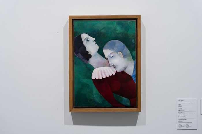 1915年,夏加尔与贝拉走入婚姻殿堂。马克·夏加尔《绿意恋人》创作于此后的两年,以大面积绿色为背景,将相拥的恋人置于漂浮的绿色空间中,绿色既象征青涩蓬勃的爱情与希望,又可见到立体主义的体积感。