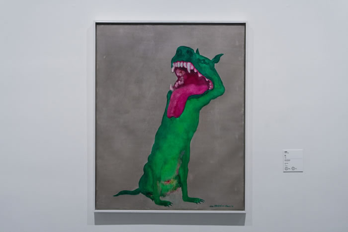 周春芽在 “绿狗系列”中以单一绿色描绘德国牧羊犬“黑根”的不同形态。绿狗的形体由摩擦、扭曲的笔触所构成,融合德国新表现主义与东方留白禅意,是艺术家精神意义上的自画像。评论家栗宪庭盛赞其开创“大写意表现主义”,将狗变成“人性孤独的终极隐喻”。
