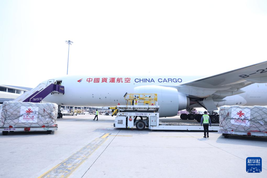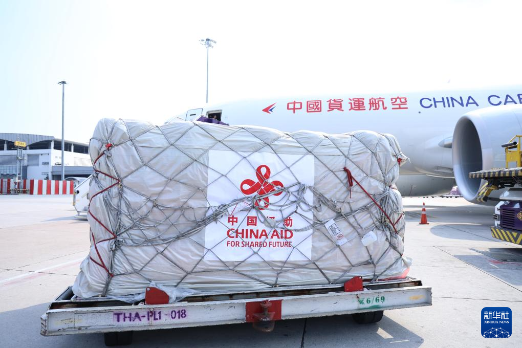 中国政府首批援泰人道主义物资30日运抵泰国首都曼谷的素万纳普机场。