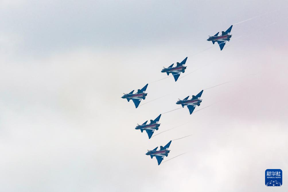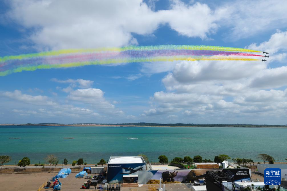 1月30日上午,中国空军八一飞行表演队在新加坡樟宜机场海面上空展开空中特技动作飞行。