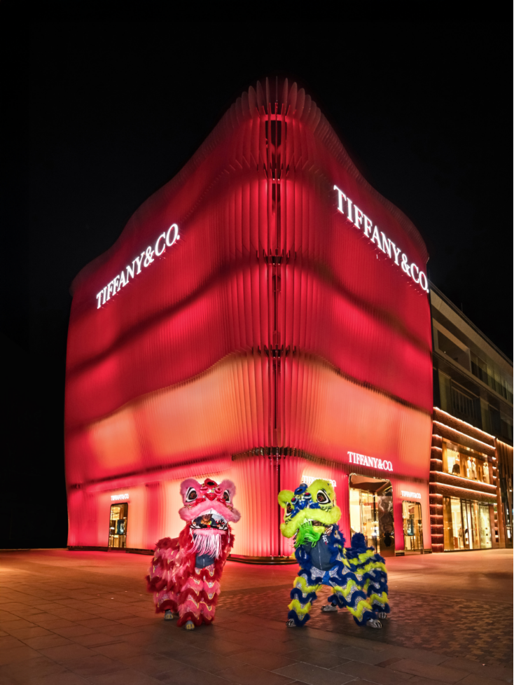Tiffany & Co.蒂芙尼融入三里屯太古里“潮狮亮相——新年醒狮派对”的浓厚新年氛围中,以象征喜悦与祝福的 “中国红”首次点亮位于在北京三里屯太古里旗舰店的建筑外立面,仿若一盏美丽的 “红灯笼” 。当东方色彩融合现代表达,成为独特在地文化体验的又一重要时刻,共同致敬中国传统文化。