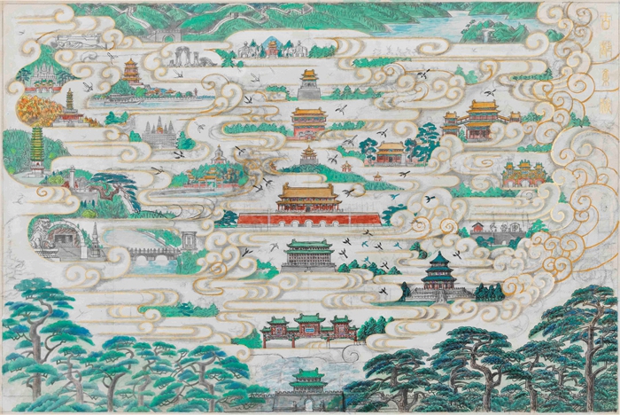 周令钊、陈若菊 古都集粹第二稿(金线彩稿)2001 74×111cm 纸本 中央美术学院美术馆藏