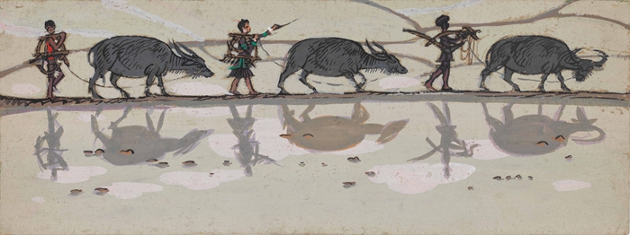 周令钊 上工去(创作小稿)1963 11.9×31.7cm 纸本粉彩 中央美术学院美术馆藏